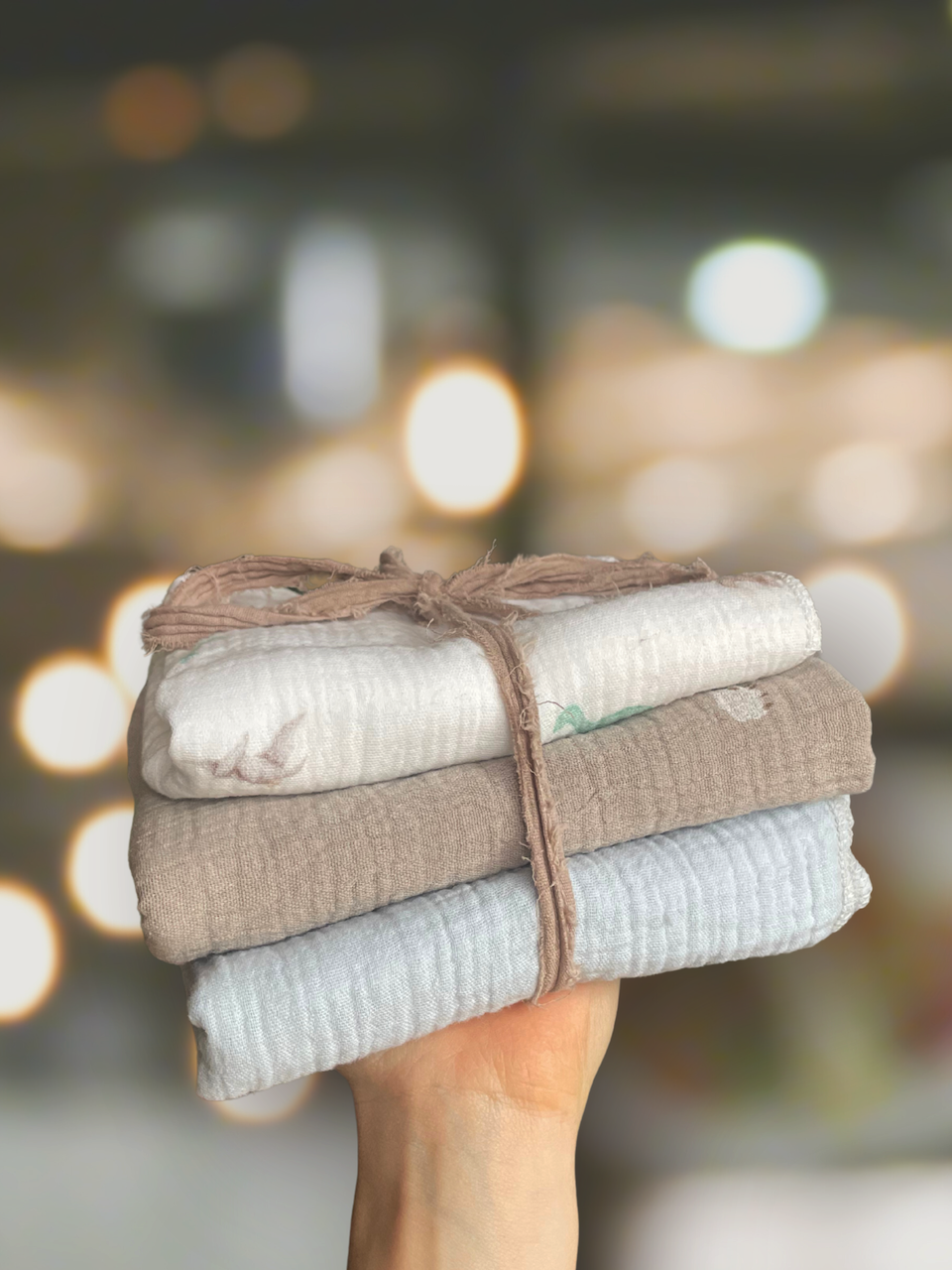 Dieses Musselintuch-Set besteht aus drei sorgfältig kombinierten Tüchern, die sich im Alltag genauso bewähren wie als besonderes Geschenk – für dich selbst oder für jemanden, den du gern hast.